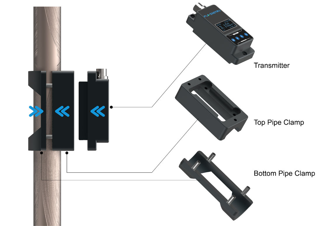 Clip-on type ultrasonic flow meters.